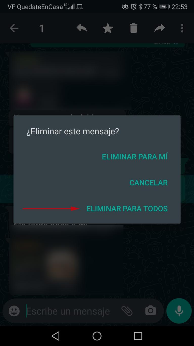 Siguiendo estos pasos podrás eliminar un mensaje para todos en cualquier conversación, sin importar que sea personal o grupal. Podrás eliminar un mensaje, aunque la otra persona ya lo haya visto, aunque esto no tendría sentido.