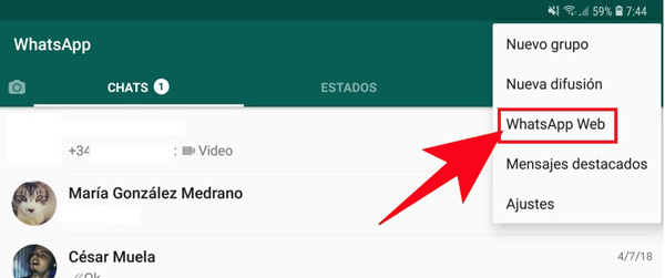 - Seleccione “WhatsApp Web” del menú desplegable que aparecerá a continuación.